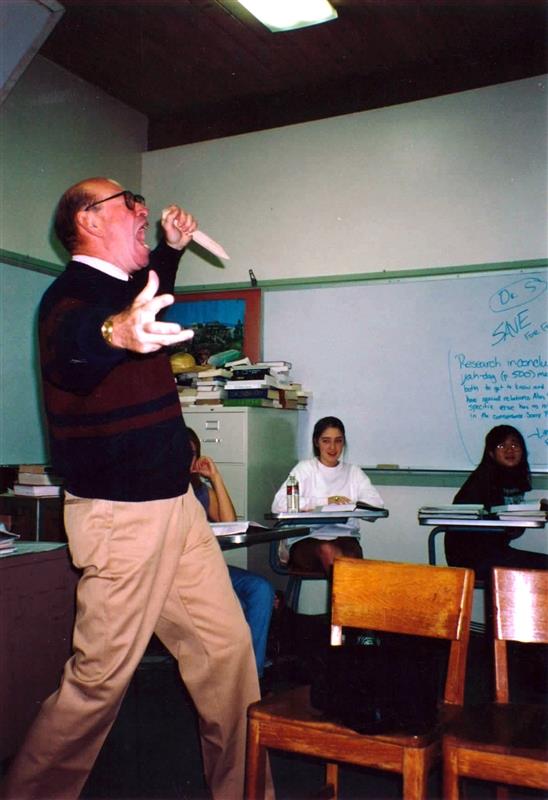 I heard the news the other day. He was such the barrel of energy in his teaching and even beyond as he led cheers in the stands. He had a certain knack of composure despite his full entrance into what might be called an English Literature induced trance performance – sweat beading off his forehead as he lurched and recited and chanted and exclaimed and exulted in his trade, his passion – he was quite possibly the coolest cat ever… Peace&Love.